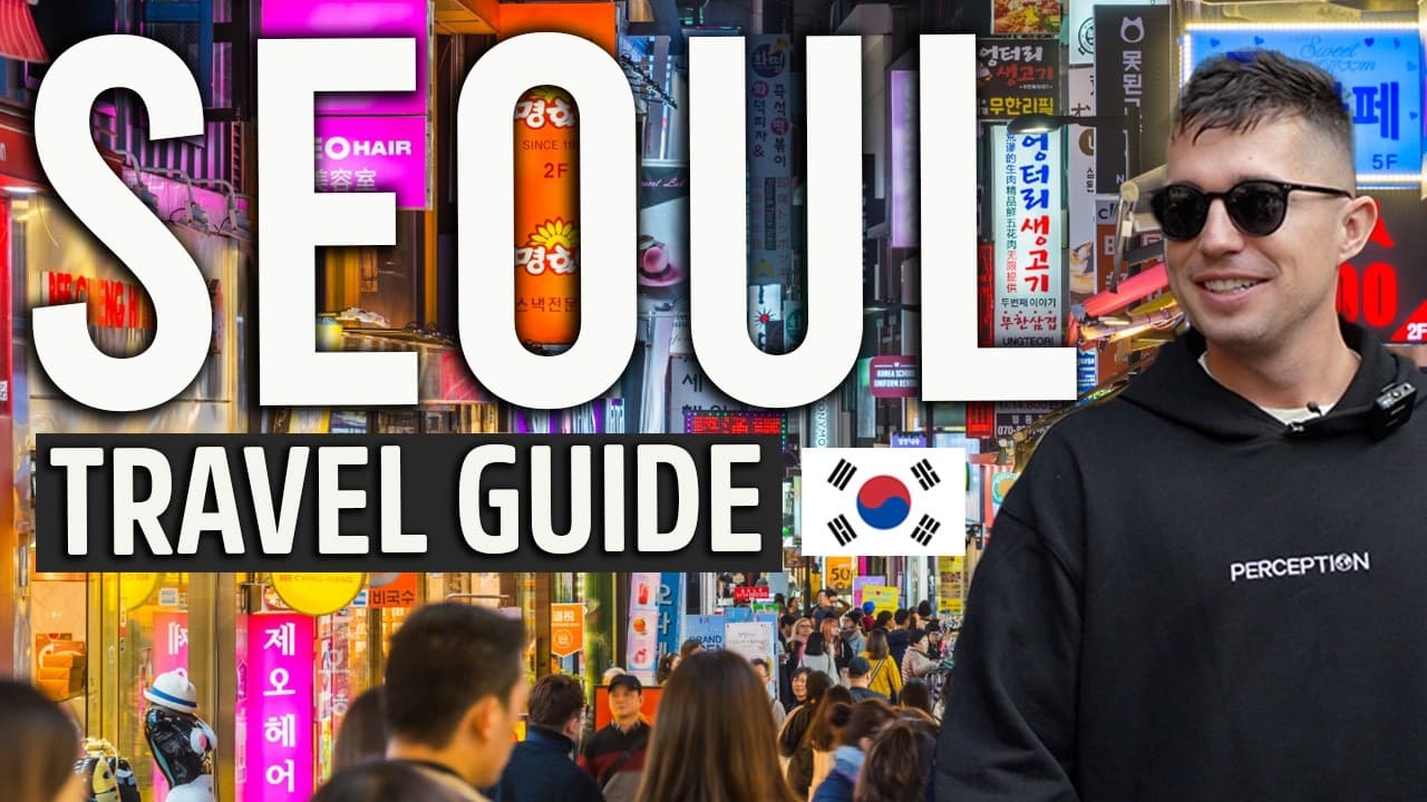 The vlogger goes into "full-on food tourist mode," trying various street foods like Korean egg bread, smoothies, ice cream with churros, and grilled shrimp. He notes the challenge is not having a big enough appetite to try everything.
